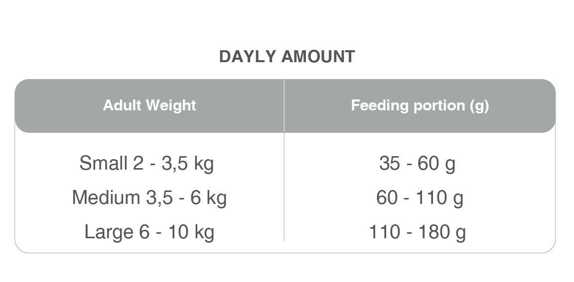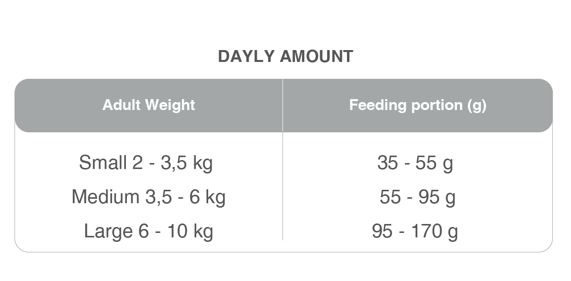 Lamb meal, brown rice, peas, corn gluten, powdered albumin, egg powder, animal fat (chicken), salmon oil (source of omega 3 and 6), protein hydrolyzate of porcine offal, beet pulp (source of fructo-oligosaccharides - FOS), beer yeast, zeolite, salt, insoluble fiber source, acidifying powder (sodium acid bisulfate), yucca schidigera extract, mannan-oligosaccharides - MOS, yeast nucleotides, ammonium dipropionate, propionic acid, sodium acid pyrophosphate, chondroitin sulfate, methionine, L-carnitine, natural antioxidants: rosemary extract, vitamin C, beta-carotene, citric acid, tocopherols, lycopene, lutein, polyphenols, taurine, vitamins: A, D3, E, K, B1, B2, B6, B12, folic acid, nicotinic acid, calcium pantothenate, biotin, choline, minerals: zinc, iron, copper, iodine, manganese, selenium.