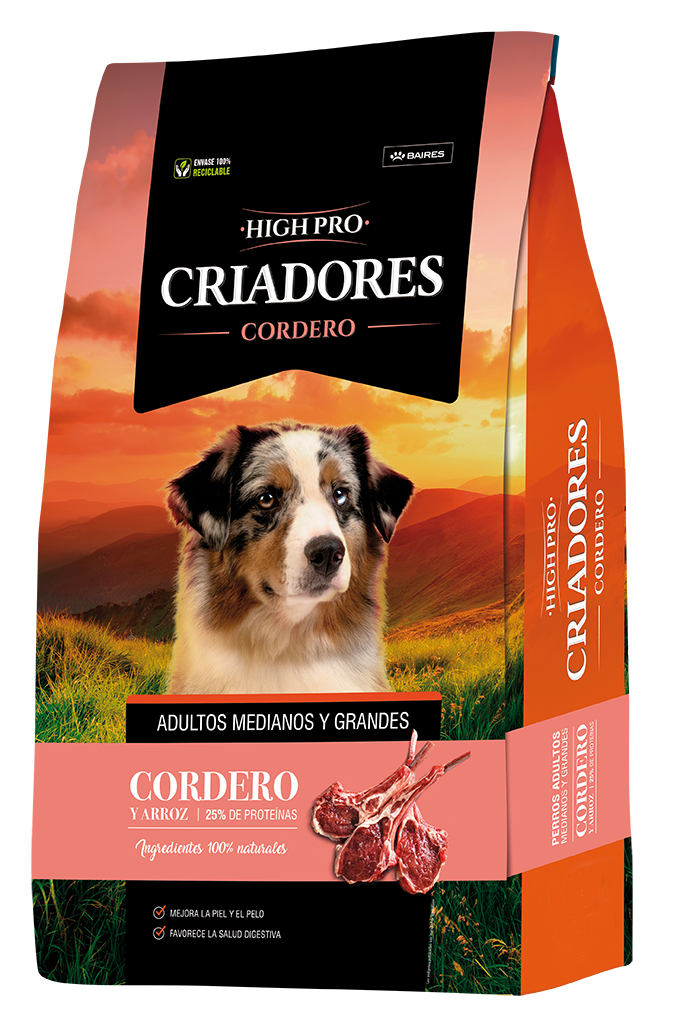 Harina de cordero, arroz, gluten de maíz, germen de maíz desgrasado, aceite de pollo, aceite de pescado (fuente de omega 3), hidrolizado proteico de menudencias porcinas, pulpa de remolacha (fuente de fructo-oligosacáridos - FOS), levadura de cerveza, zeolita, extracto de yucca schidigera, manano-oligosacáridos - MOS, propionato de calcio, ácido propiónico, pirofosfato ácido de sodio, glucosamina, condroitin sulfato, antioxidantes naturales (extracto de romero), ácido cítrico, vitamina C, betacaroteno, luteína, vitaminas: A, D3, E, K, B1, B2, B6, B12, ácido fólico, ácido nicotínico, ácido pantoténico, biotina, colina, minerales: zinc (óxido de zinc, zinc quelatado), calcio (carbonato de calcio), hierro (sulfato ferroso), manganeso (óxido manganeso), cobre (cobre quelatado), yodo (iodato de calcio), selenio (levadura de selenio).